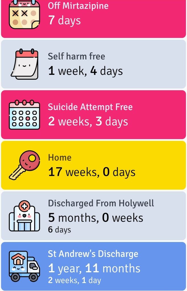 I’ve used 8 months of this year counting days that I’ve been out of hospital, risk-free, and in recovery, only to feel I’ve erased my progress each time I have a mental health wobble and start the counting again from day 1.